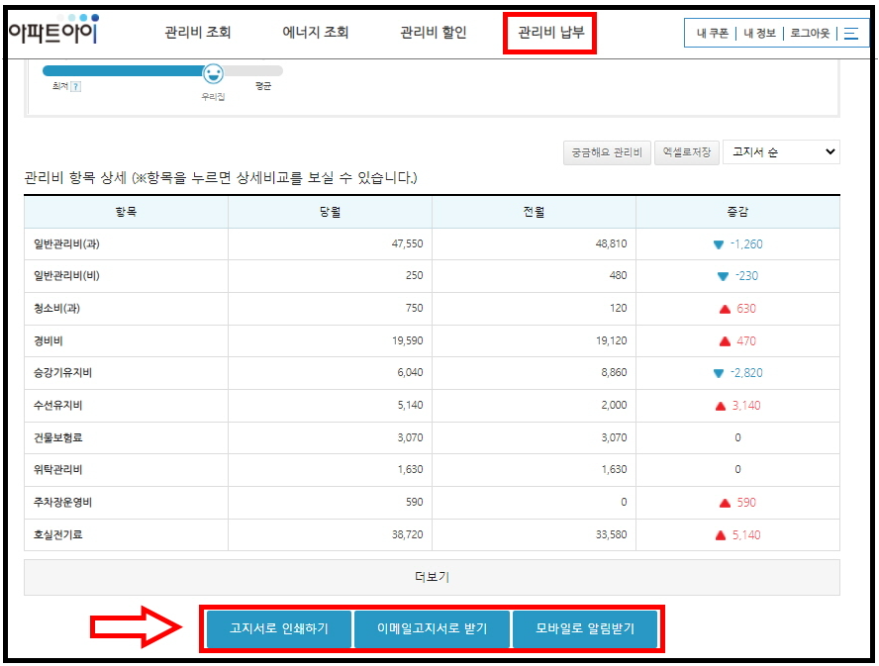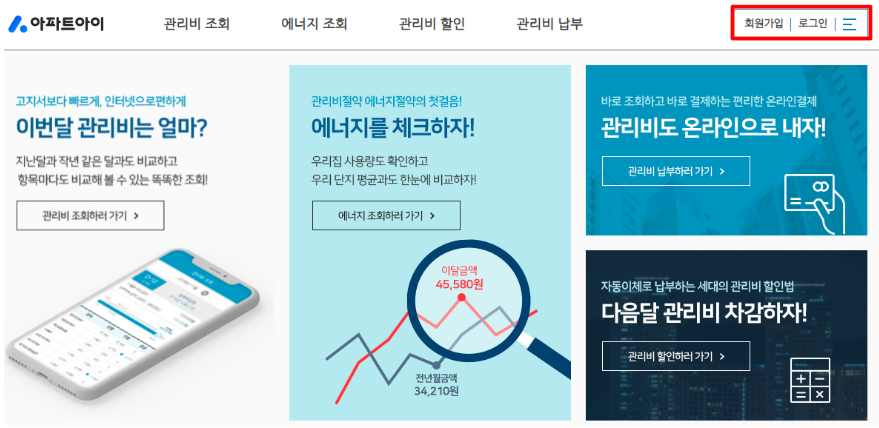 「아파트아이」를 통한 아파트 관리비 조회 및 납부 방법