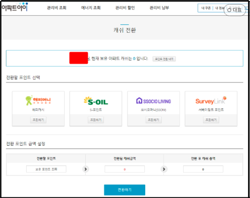 4) 캐쉬전환을 통해 아파트 관리비를 일부 절약할수 있으므로 잔여 포인트가 있다면 캐쉬전환하여 사용하시기 바랍니다.