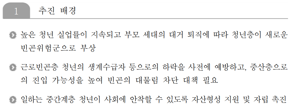 그중 청년내일저축계좌는 청년희망적금이나 청년도약계좌처럼 다수의 청년에게 기회를 주는 혜택이라기 보다는 소득수준이 낮고 재산이 적어 경제적으로 어려움을 겪고 있는 청년들에게 지원하는 사업입니다.