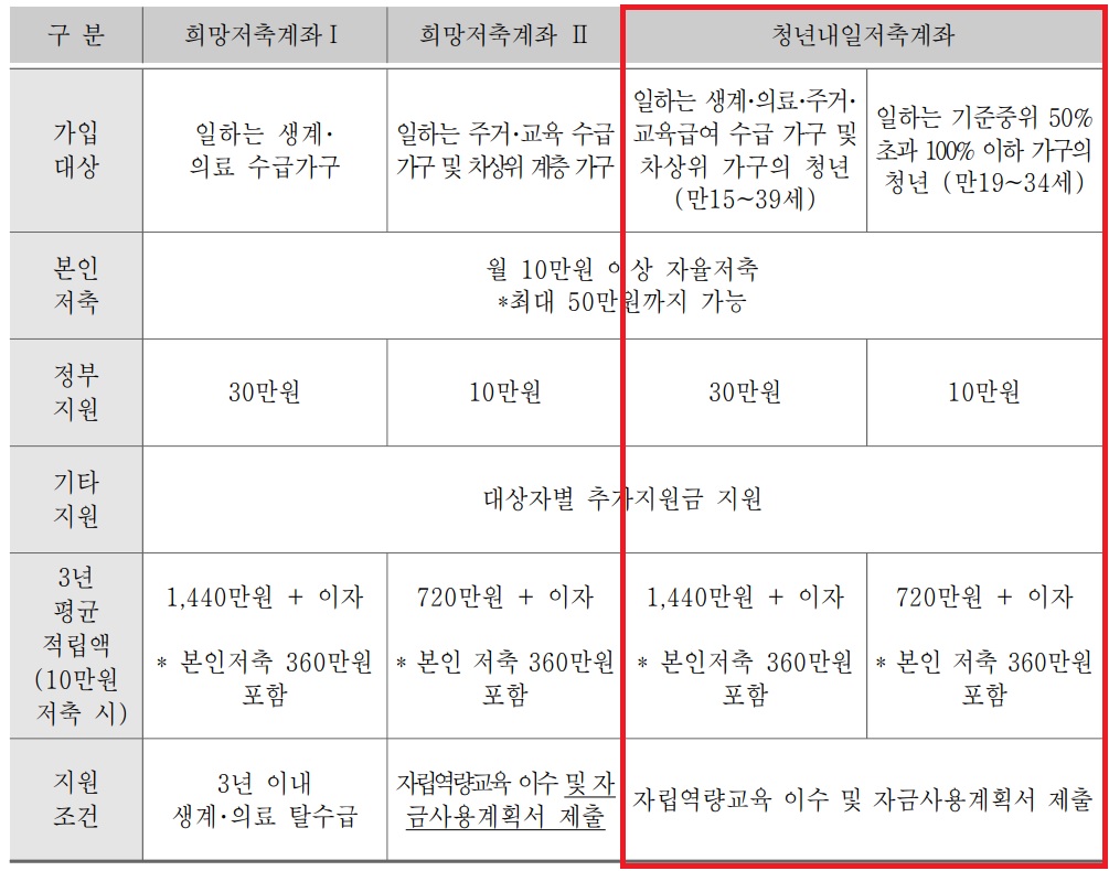 여기서 유사자산형성지원사업은 대표적으로 희망키움통장, 내일키움통장, 청년희망키움통장, 청년저축계좌, 희망저축계좌 등입니다. 이들에 가입되어 있거나, 혹은 가입한 이력이 있다면 추가 가입이 가능한지 꼭 확인해보시기 바랍니다.